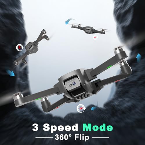 Mini Drone con 3 Cámaras, WiFi 4K HD Drone Plegable Compatible con Giro de 360°, Mantenimiento de Altitud, Disparo de Ge...