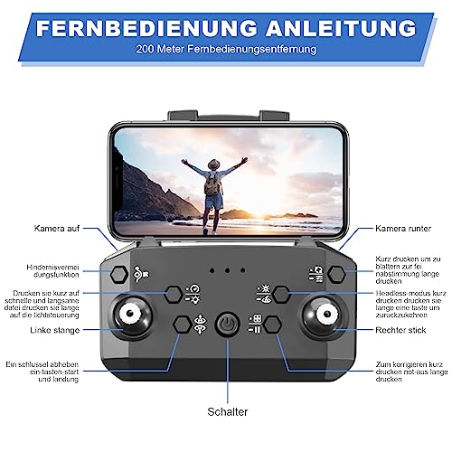Dron Wi-Fi FPV para Niños y Principiantes, Drone Plegable con Cámara HD & 2 Baterías - Fácil Despegue/Atterrizaje, Giro ...