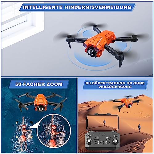 Mini Drone con 3 Cámaras, WiFi 4K HD Drone Plegable Compatible con Giro de 360°, Mantenimiento de Altitud, Disparo de Ge...