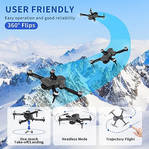 Más Functions Plegable RC Drone Puede controlar el dron FPV con un control remoto o un teléfono inteligente APP. Los drones con camara niños pueden realizar impresionantes volteretas en 3D, modo sin cabeza, fotovídeo gestual, despegueaterrizaje con un solo toque, control de 3 velocidades, vuelo de trayectoria y otras funciones, hacen que sea fácil y divertido para adultos o principiantes. Alarma de batería baja y función de parada de emergencia para garantizar un vuelo seguro del dron