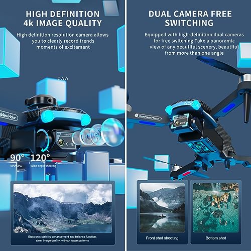 4K HD Cámara Cámaras dual Drone adulto principiantes es cámara 4K, disparo gran angular de 120 y ajuste manual de 90, cámara con resolución de alta definición le permite grabar claramente momentos maravillosos. Y cámaras dual se pueden cambiar libremente y puedes tener una vista panorámica del paisaje desde cualquier ángulo. Transmisión sincrónica FPV WIFI carga las tomas a su teléfono en tiempo real, para que pueda compartir las maravillosas imágenes tomadas en cualquier momento