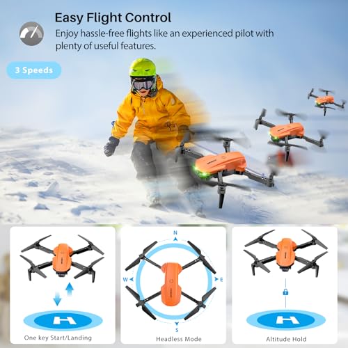 Drones con Camara 4K Adultos,Dron para Adultos/Niños Drones Plegable 3D Flip. Regalos para Niñas/Niños Drone Plegable pa...
