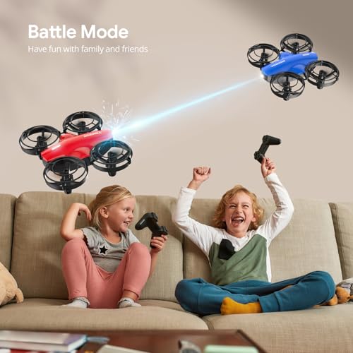 Tomzon A24 Mini Drone para Niños, Modo de Batalla, Cuadricópteros RC con Lanzar a Ir, 3D Flip, Rotación a Alta Velocidad, Modo Sin Cabeza Juguete para Principiantes Rojo y Azul, Paquete de 2