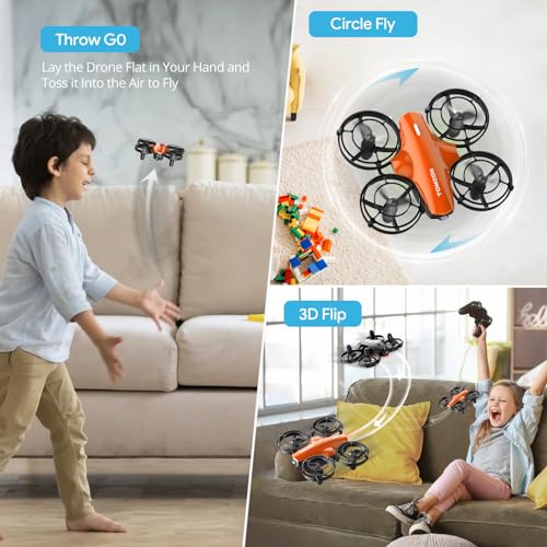 Tomzon Mini Drones para Niños Dron con 3 Baterías 24 Minutos de Vuelo, Modo de Batalla, Cuadricópteros Kid Drone Tres Funciones Voladoras, Juguete para Principiantes Naranja