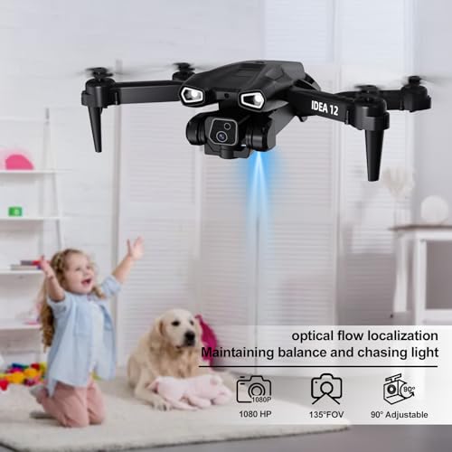 TTROARDS 12mini Dron con Cámaras 1080P HD adultos, 135° Adjustable Eléctricamente - Mini Drones Plegables, RC FPV WIFI C...