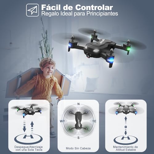 Gerbala Drone Plegable Sin Escobillas para Principiantes - Fácil Despegue/Atterrizaje, Doble Cámara, 3D Flip, Sensor de ...